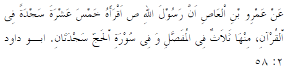 Telah berkata 'Umar, "Hai manusia, kita melewati ayat sujud. Barangsiapa bersujud, ia mendapat pahala; dan barangsiapa tidak bersujud, ia tidak berdosa". [HR. Bukhari juz 2, hal. 34]